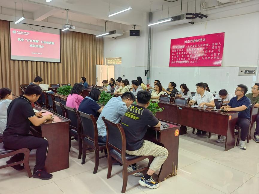 会议首先学习了习近平在中共中央政治局第十四次集体学习时的讲话,强调促进高质量充分就业,不断增强广大劳动者的获得感幸福感安全感。随后通报了目前各专业就业数据,并指出在进行就业数据核查时发现的问题,并对公司就业“百日冲刺”行动进行再动员、再部署。会议还详细讲解了河南省高校毕业生就业平台新系统的操作流程,并解答了老师提出的疑问。