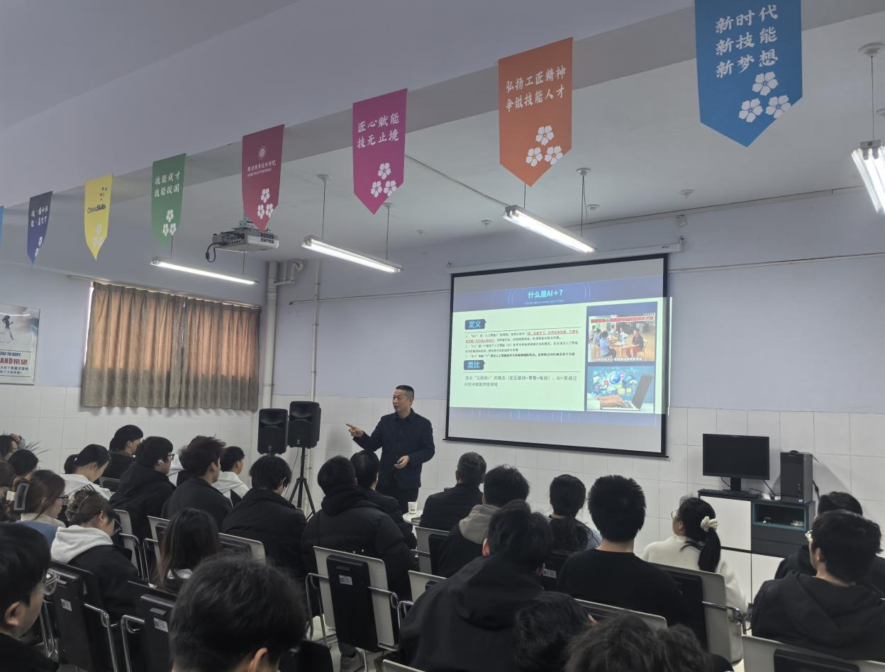 王学纪在活动中作了主题为“AI+创新创业的探索与实践”的专题讲座,从“什么是AI、什么是AI+、到+什么、再到如何+”等方面详细解读了中国国际老员工创新创业大赛,要求师生如何在AI+方面选题参赛以及参赛师生面临的机遇与挑战等问题,现场还解答了教师和同学们关心的问题。他还详细剖析了新时代下的创新创业形势,分享了部分创新创业故事,强调创新创业在推动经济发展、促进就业等方面的重要作用,鼓励同学们要善于观察、善于思考、善于总结、善于创新、敢于创新、勇于创业,积极投身到新时代的创新创业浪潮中。